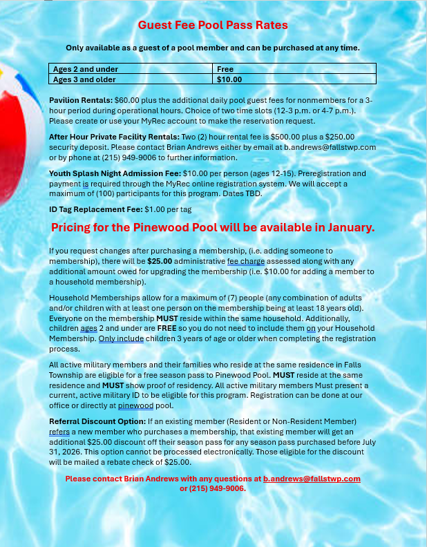 The Pinewood Pool can be reached at 215-949-2960 starting May 23, 2026.