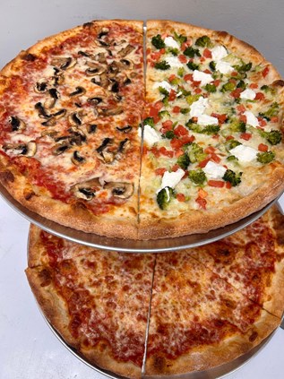 So far, “pizza’s strong here,” she said of the diverse menu featuring both traditional pizzas, along with gluten-free counterparts, and gourmet specialties such as Baked Ziti Pizza, Pepperoni and Hot Honey Pizza, Cheesesteak Pizza and more. Pizza is available for purchase by the slice, with varieties changing daily, or by the whole pie.