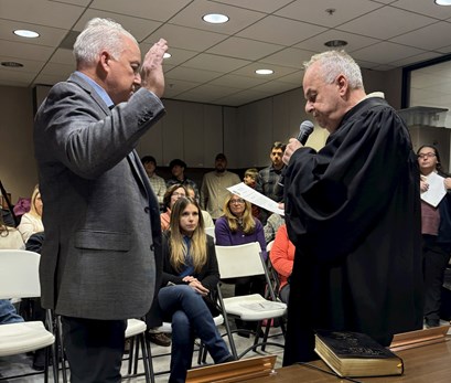 District Judge John Galloway swore in Tim Loteckie, who was elected in November. Loteckie will fill the seat vacated by Jeff Boraski, who, after two six-year terms, did not seek re-election.