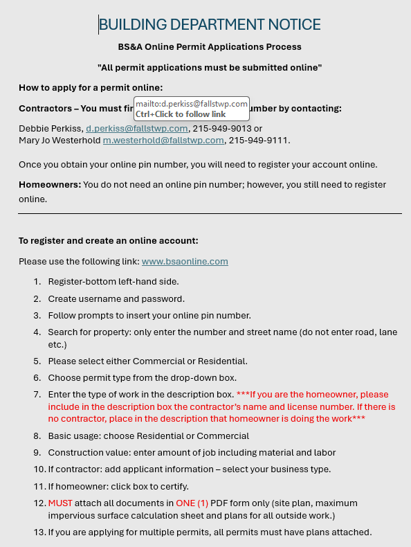 Chief Code Enforcement Officer & Zoning Officer | (215) 949-9002 |