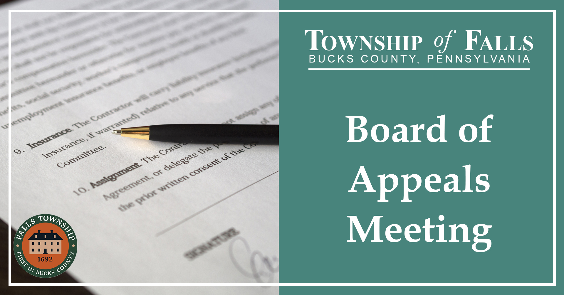 The Falls Township Board of Appeals meets as necessary on matters concerning Uniform Commercial Code appeals.